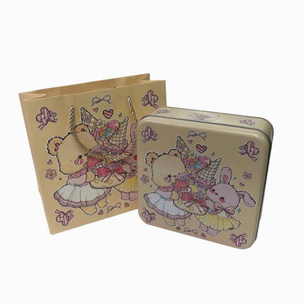 Hộp Thiếc Vuông Họa Tiết (Kèm Túi Giấy)