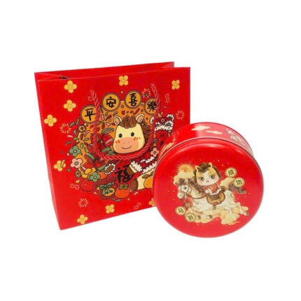 Hộp Thiếc Đỏ Tròn Họa Tiết (Kèm Túi Giấy)