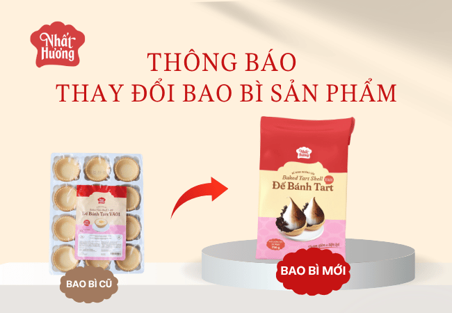 Nhất Hương xin thông báo với Quý khách hàng về việc “Thay Đổi Bao Bì” sản phẩm Đế Bánh Tart YA01 Nhất Hương. Trong thời gian chuyển đổi, cả bao bì cũ và mới sẽ cùng được lưu hành song song trên thị trường. Các sản phẩm bao bì cũ vẫn đảm bảo chất lượng theo hạn sử dụng in ấn trên bao bì.